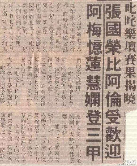 当年红透东南亚的谭咏麟与张国荣形成谭张争霸之势,两人均是各大颁奖典礼的常客,谭张歌迷为争两人谁是一哥甚至大打出手,当年两人出场均会伴随掌声与嘘声。谭张争霸直至1987年谭咏麟宣布不再拿带有竞赛性质的奖项,及1989年张国荣退出歌坛而结束。