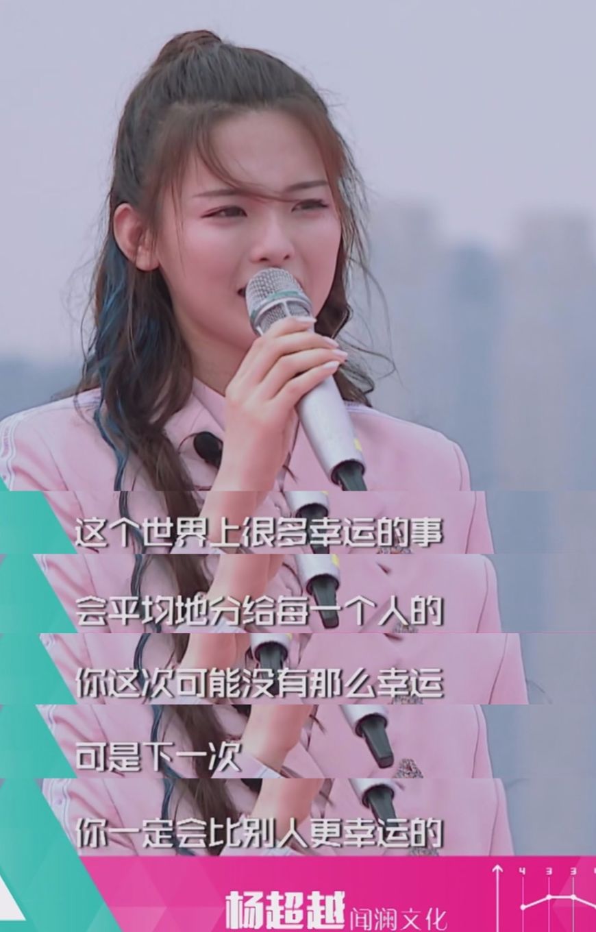 在女团比赛最关键的时刻,杨超越说出了这句话:这个世界上有很多幸运的事会平均地分给每一个人,你这次可能没那么幸运,可是下一次,你一定会比别人更幸运。