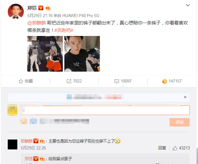不得不说,在节目播出之后,郑恺和郭麒麟的一波互动,也是打破了粉丝之间不必要的争吵!郑恺将自己近些年的裤子都翻了出来让郭麒麟选择一条,也是能看出郑恺满满的不好意思了。只不过只能挑一条,可真是“对不起”郭麒麟的裤子!要知道,去年年底德云社就已经封箱了,大半年的时间,还不曾开箱!相声演员们迟迟没有工作,纷纷转行进攻综艺,不仅要养德云社,更是为了郭德纲的蟒袍。