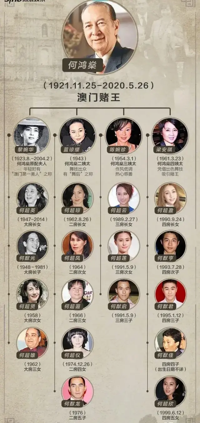 赌王原配大房目前仅有两个女儿:何超贤和何超雄,目前均未在集团内担任职务,但也有信托基金傍身;