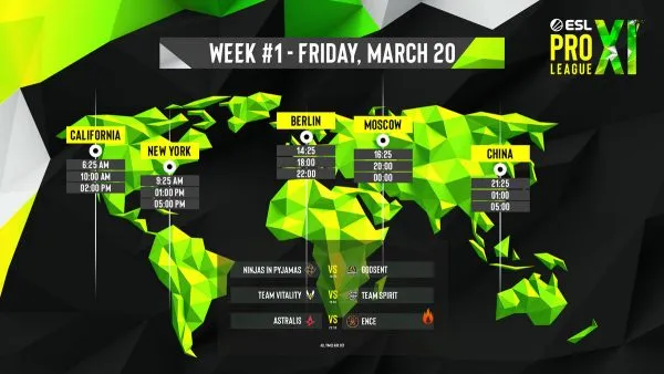 目前远程运行的最大联赛是ESL职业联赛(EPL),这是一个专业的CS:GO比赛,该联赛除决赛外一直在线进行直到2019年为止。玩家通过网络摄像头提供采访。
