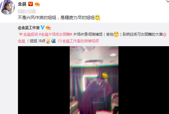 本来拍戏就已经很辛苦了,别的艺人都是抓紧一切时间休息,而金晨在这个时候还不忘记练女团舞。
