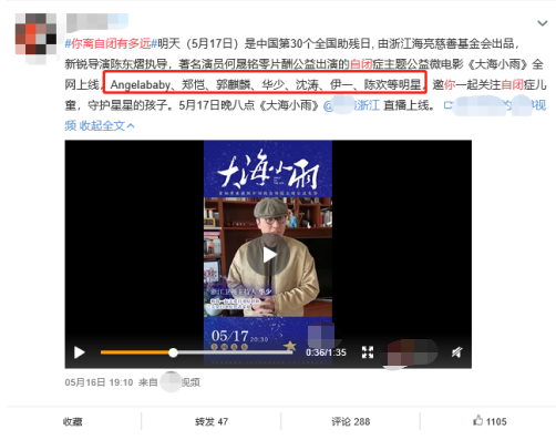 该公益电影全网上线时,还获得了杨颖、郑凯等当红明星的宣传。