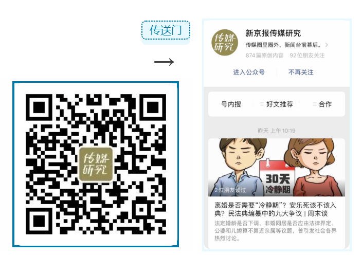 推荐理由:由腾讯新闻旗下全媒体智库运营,有一则栏目为考研大礼包,其中包括彭兰老师、常江老师、胡泳老师、刘海龙老师、蔡静老师、董晨宇老师等针对网络社群、粉丝集群、知识付费、智能传播、网络流言、平台的深度分析,光看到这几个大佬名字就不自觉扫码了吧~除此之外,每期文章的分析聚焦一个事件,链接多个视角和理论,可以作为专题整理的好帮手。