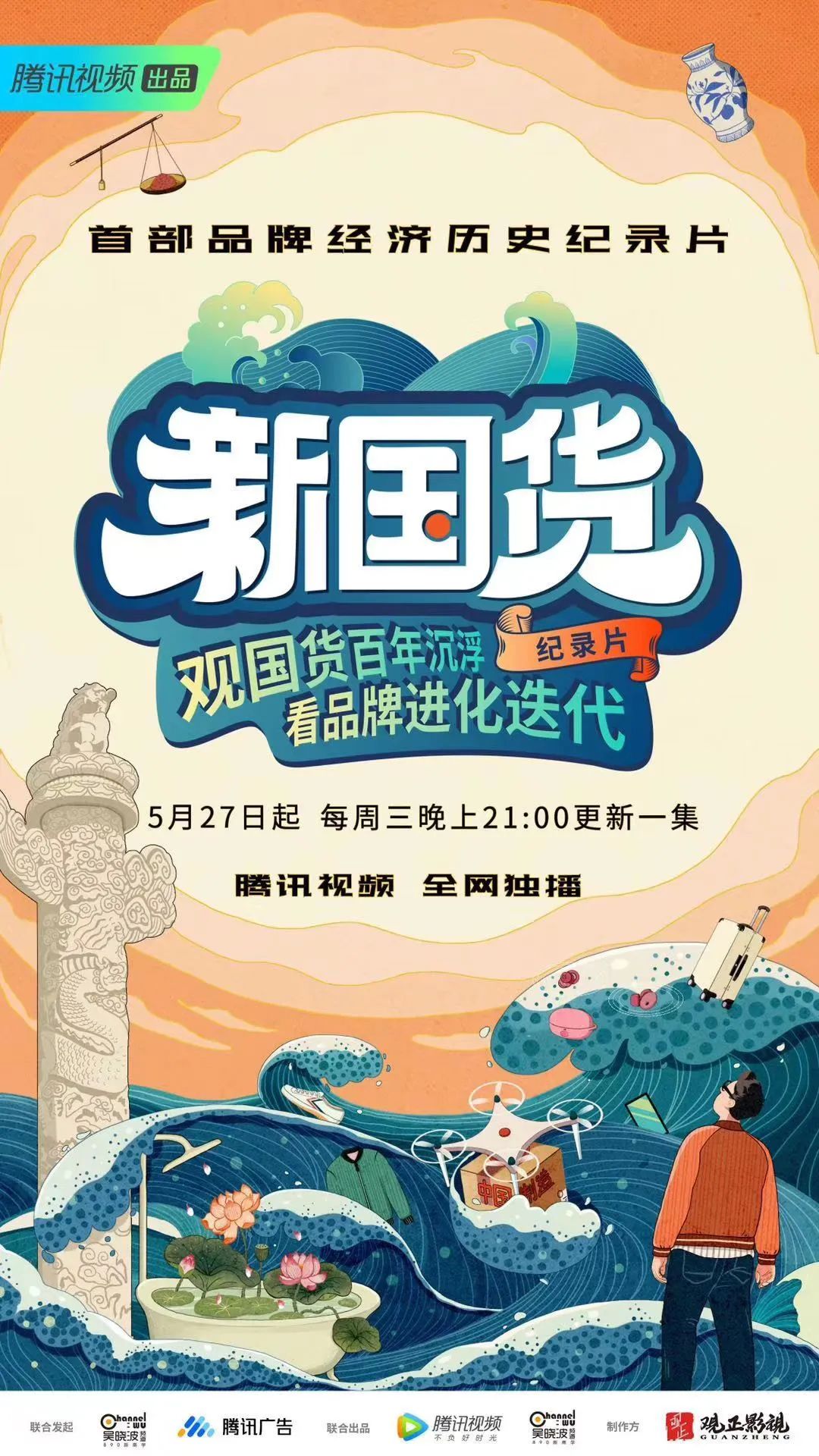 今天21点,由腾讯视频、吴晓波频道联合出品的大型纪录片《新国货》在腾讯视频独播上线。这是国内首部以国货沉浮为主题的六集经济历史纪录片,由吴晓波担纲总讲述人,《新国货》以历史为轴,以品牌为点,以人物为线,通过六集的篇幅整体讲述了百年国货的起伏。