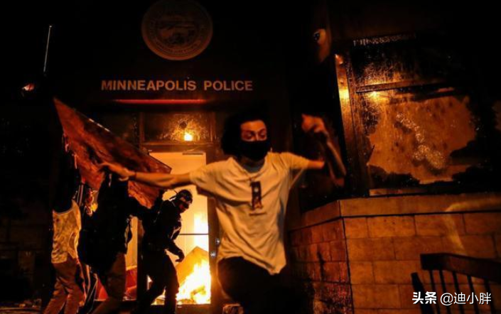 看到一张张来自于美国的抗议现场图,很多人可能会发出疑问:这是熊熊火焰下的小城明尼阿波利斯,还是导弹空袭下的大马士革?这是被暴徒砸毁的明尼阿波利斯超市,还是满目疮痍的叙利亚街道?( 示威者闯入警站,并将警站点燃,图/《纽约时报》)