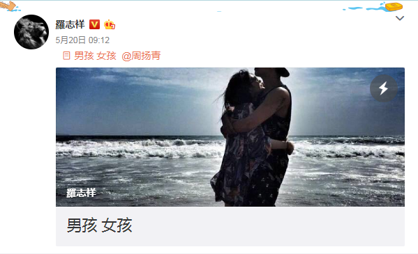 本以为事情就此告一段落了,没想到5月20日9点12分,罗志祥却在个人的社交平台上发表了论文式的文章《男孩 女孩》,用20篇日记回忆起了和周扬青9年的点点滴滴,同时还曝光了许多两人的亲密合照,此举还遭到了“娱乐圈纪检委书记”王思聪的吐槽。