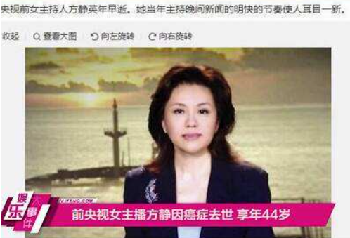 据悉,方静是因为胃癌转肝癌,导致已经病入膏肓,饱受病痛的折磨,在痛苦中离世。