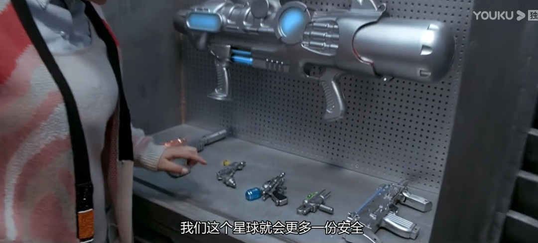 当贾小玲打开了武器库的大门,满墙低配塑料版黑衣人装备简直堪称一比一复刻,尤其是贾小玲选中的那一把,不正是探员K给探员J选择的名枪“小蟋蟀”吗?