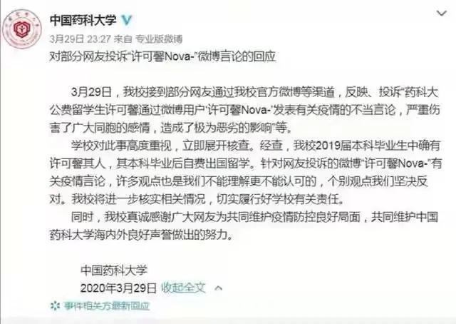 09.2020年3月29日,中国药科大学表发声明澄清。