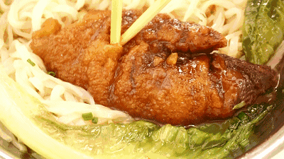 猪脚,是这碗粉绝对的主角。经过油炸后的猪脚再用葱、蚝油、茴香、陈皮、桂皮、八角等多种调料慢慢炖煮,方能成就一只色香味俱全的卤猪脚。