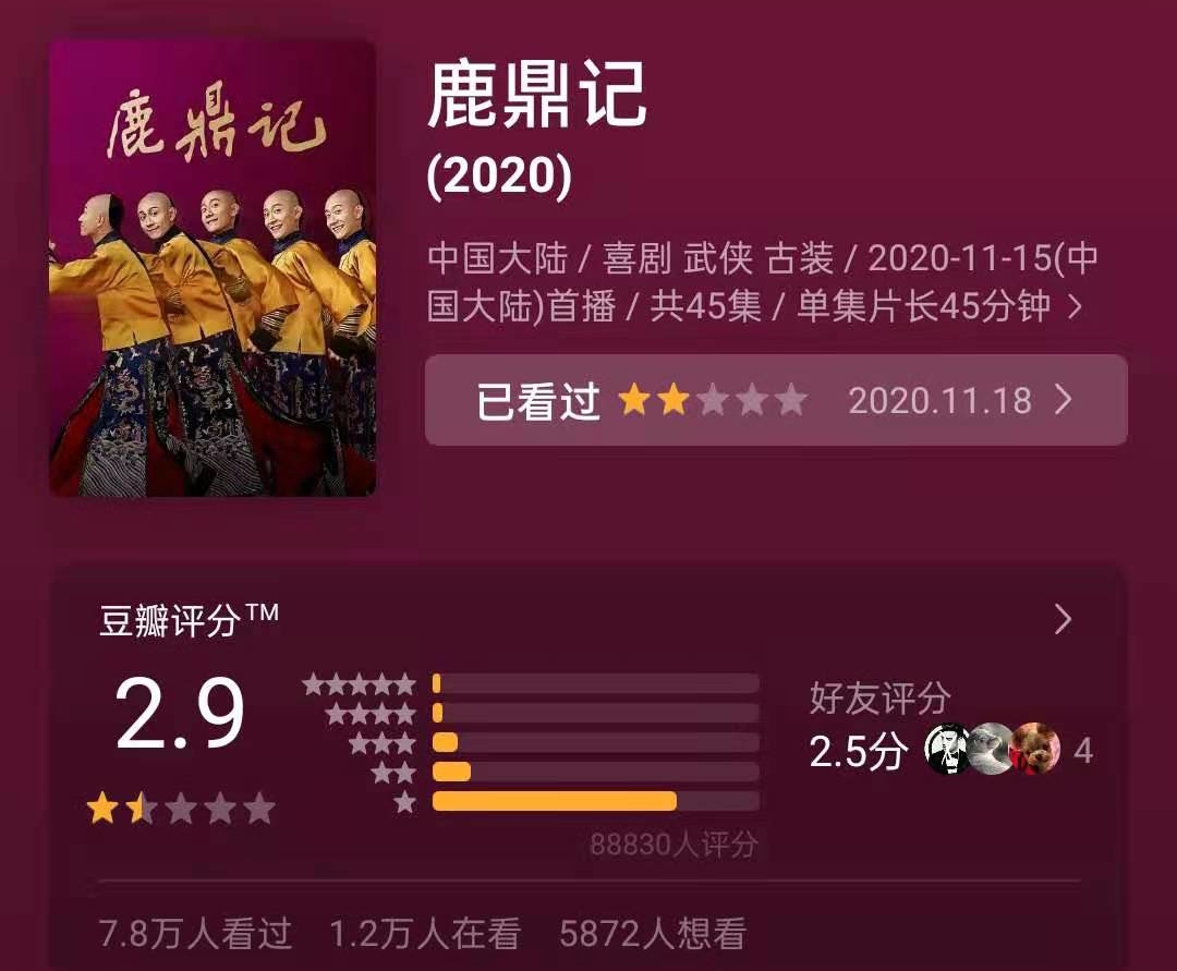 《鹿鼎记》是金庸的经典之作,忠实拥趸不知凡几。也因为如此,每次被翻拍都自带热度。而由张一山主演的新《鹿鼎记》,却以2.9的收官评分成了最差一版。
