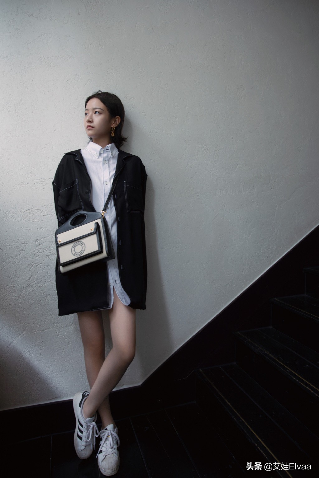 衬衫其实在李庚希的身材还是挺不多见的,但也不是没有,不过她很会利用这种基础款的单品,看似不起眼的产品在她身上谈不上惊艳,却也是十分的耐看,比如这一身,纯色衬衫作为内搭,选择黑色外套作为外搭,一黑一白,让整体造型显得很有层次,显得很丰富,同时踩着运动鞋,一副少女下衣失踪的模样,美得精致。