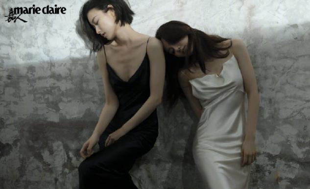 睡衣派对也是杂志拍摄时经常采取的拍摄风格,一白一黑的丝绸睡衣,很好的将整个身材完美的包裹起来,从而勾勒出优美性感的事业线,丝绸质感的材料总是能够给人顺滑舒适的质感。
