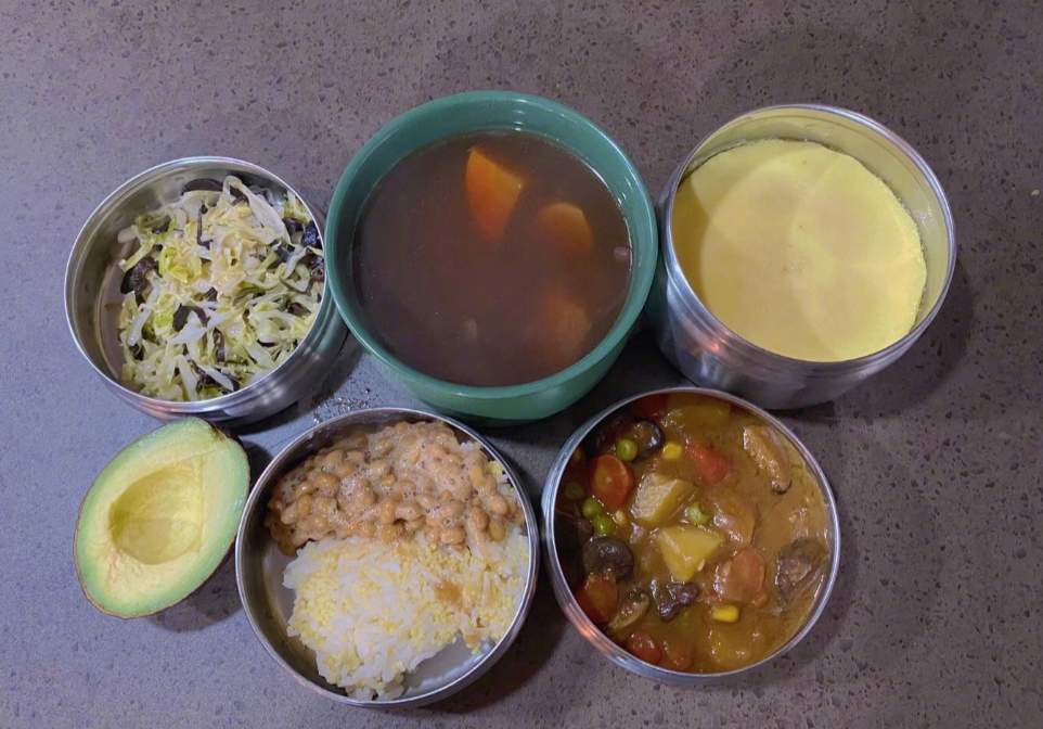孙俪的午餐这一餐素食也是非常丰盛呢,有蒸蛋、蔬菜汤、牛油果、凉拌包菜木耳、咖喱炖菜等等,主要以蒸、烫、煮、炖等烹饪方法,将食物简单处理后,少油、少盐、少糖,能摄取足够的蛋白质和膳食纤维,保证摄入的营养均衡。孙俪从来都不提倡节食,认为只有平衡膳食,同时避免营养失衡,才是通往健康减重的路 。