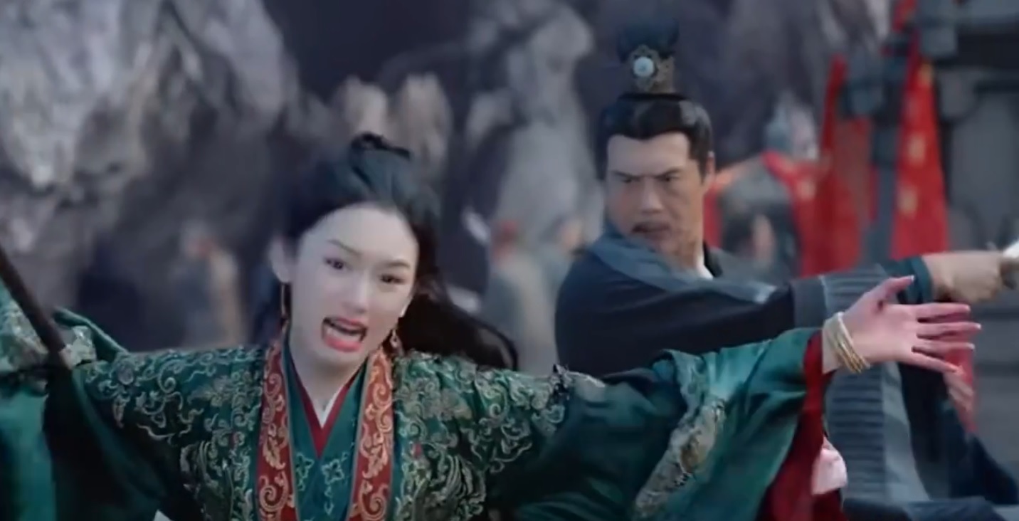 看到鬼谷鬼众跟清风剑派在决一死战,身着绿嫁衣的顾湘准备拼死一搏,她手持双刀腾空而起、直奔莫怀阳而来。