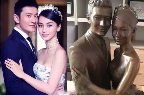 自恋如黄晓明,甚至1:1打造了两人婚纱照同款铜像,放在办公室里欣赏天作之合的美好姻缘,而铜像恒久远,感情却很脆弱。