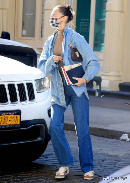 肯豆和贝拉的衣品几乎同步,她们的审美也一直都在线。去年热衷紧身健美裤的肯豆,也换成了这种版型有点复古的微喇版型,更休闲也更气质了。而搭配的短裤背心和夹克,透着几分穿搭的小心机,吸睛指数绝对不会太低。