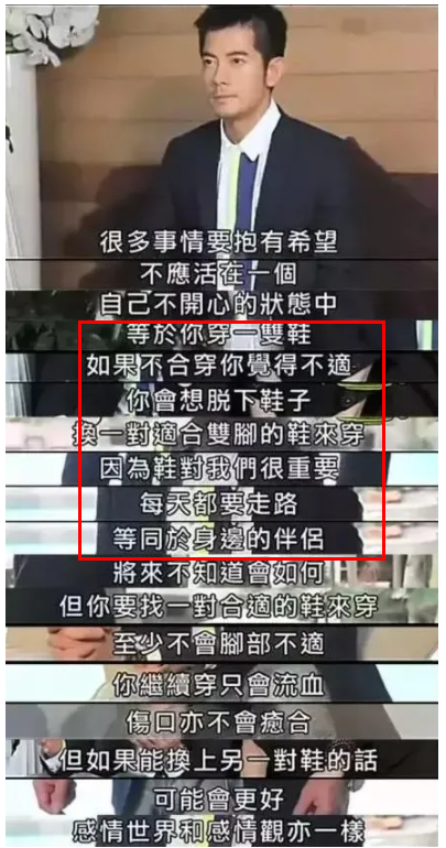 对此,他回应道:伴侣就像鞋子,穿着合脚、舒服才行。