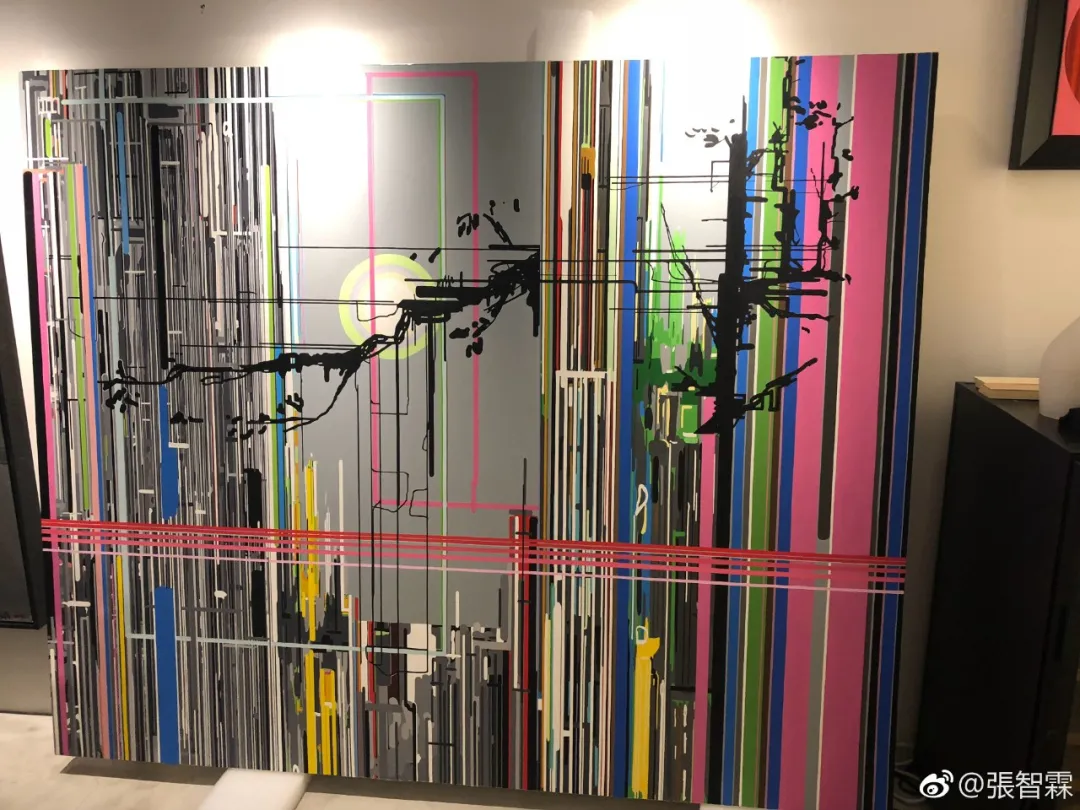 客厅背景这幅大型水墨画,正好也展现了赵文卓一家对中国风的喜爱。