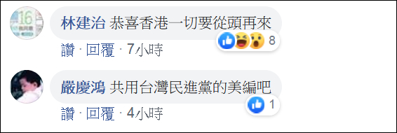 “恭喜香港一切要从头再来”、“共享民进党的美编吧”
