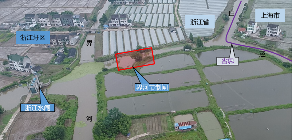 “我们现在所处的地方,属浙江省平湖市,但有150亩区域未纳入浙江圩区,且有村民居住在此。考虑到填补交界圩区覆盖的缺失,金山拟将这小块区域纳入双圩塔港圩改造工程,在小块区域内的支河与界河交接处设置界河节制闸,做到全覆盖。”对于金山水闸建到隔壁平湖之事,金山区水务局局长赵云表示,此举令浙江省小块区域的防汛安全得到保证,金山也可以少翻建1座节制闸,节省一笔建设费用,可谓“一举两得”。