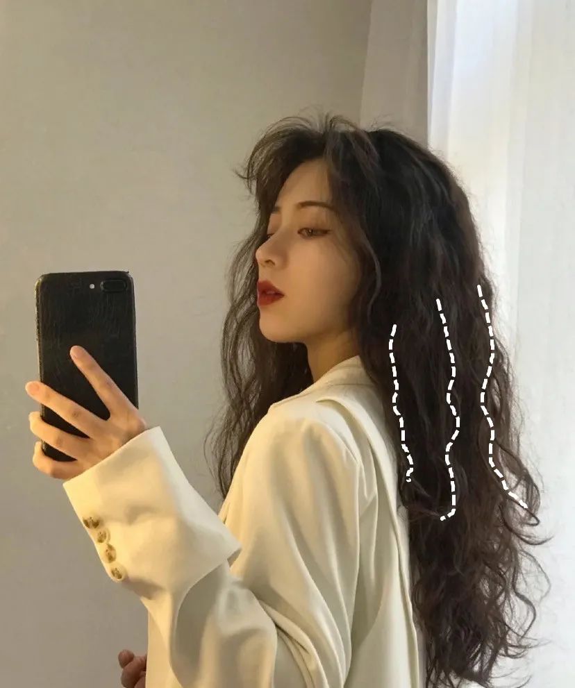 集羊毛卷和水波纹的优点于一体,看似凌乱其实很好梳顺,平时也基本不用怎么打理,属于越洗越好看的那种