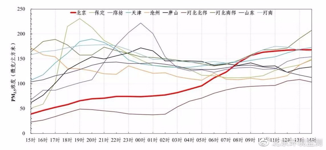 12月6日起,受大范围静稳、逆温、高湿等不利气象条件影响,华北平原逐渐形成一次区域性重污染过程,部分城市短时达到严重污染。从北京大气监测实况数据来看,昨天凌晨开始,自东南向西北污染水平逐步升高,9时全市达到重污染水平。
