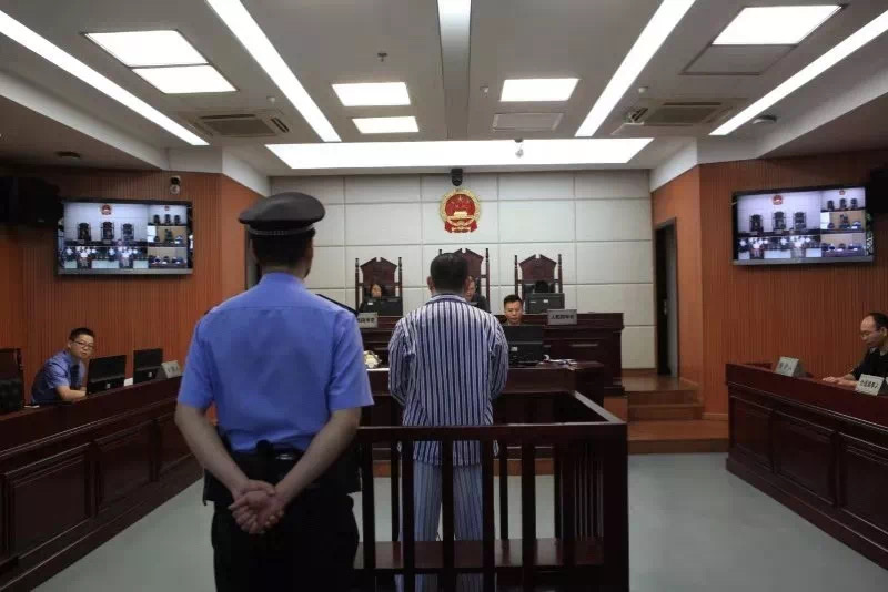 肇事男子田某,穿着病号服受审。图片来源:瓯海法院