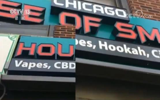 央视记者 刘骁骞:这个街区位于芝加哥城的北部,叫做“湖景区”,很多年轻人会选择在这里生活。我刚才走过来就发现好多卖电子烟的商铺。你看,这家其实也是,这个“Vapes”其实就是电子烟在英文里的意思。我发现这家便利超市也有卖电子烟,这个标识现在是电子烟市场最大的一个厂家。它写了这个警告,说这种产品含有尼古丁,它是一种会致瘾的化学成分。