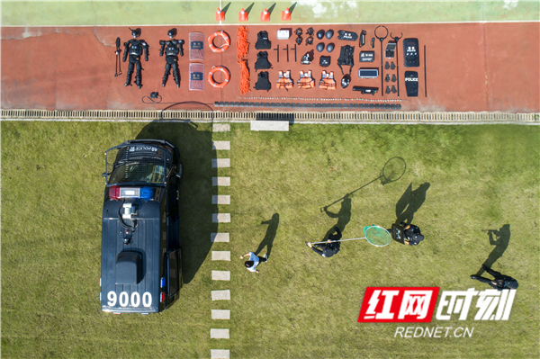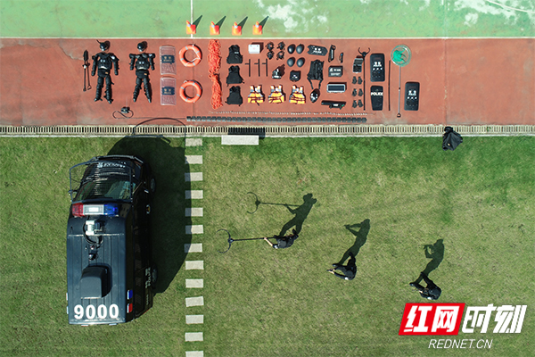 10月21日上午,长沙市公安局特巡警支队第四特警大队篮球场内,一辆长沙特警新配装的PTU冲锋车被“开箱”,二十几分钟的时间里,三十几件宝贝被特警从冲锋车内相继拿出。