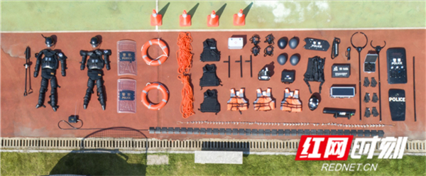 从突击攻坚用的92式手枪、79式微冲、战术背心、防弹头盔、防毒面具、破拆套件、声波驱散盾牌,到防暴处突用的防暴服、防暴盾、丁字棍、抓捕器、防割手套、催泪驱散器,再到指挥和救援用的医药箱、救生圈、救生衣、灭火器、锥形桶、指示牌、阻车带,每一件装备的使用和摆放位置值守民警都烂熟于心。