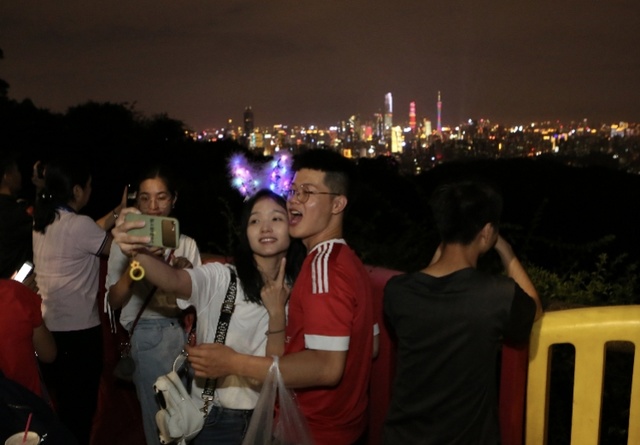 当晚8时许,白云山山顶公园人头攒动,许多市民登高拍摄市区夜景。副市长林道平来到山顶公园看望慰问执勤值守和服务保障工作人员,并召开现场会听取各部门、各区登高点的汇报,提出具体工作要求。