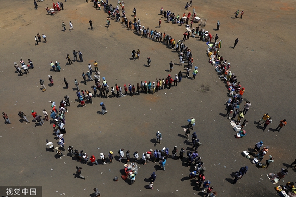 2019年9月12日,津巴布韦前总统穆加贝遗体运抵首都体育馆,民众悼念。(视觉中国)