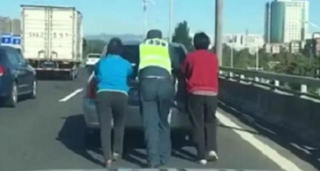 为了保证安全,民警暂时拦停其他车辆,让警车上的一名协管员和故障车上的两名乘客一起,把车推到右侧车道,然后,民警放开左侧两车道,由警车在故障车后方进行安全防护,直到把故障车推到300多米外的应急车道。由于民警处置迅速、措施得当,使京藏高速路面交通快速恢复,也让遇困群众及时脱离险境。