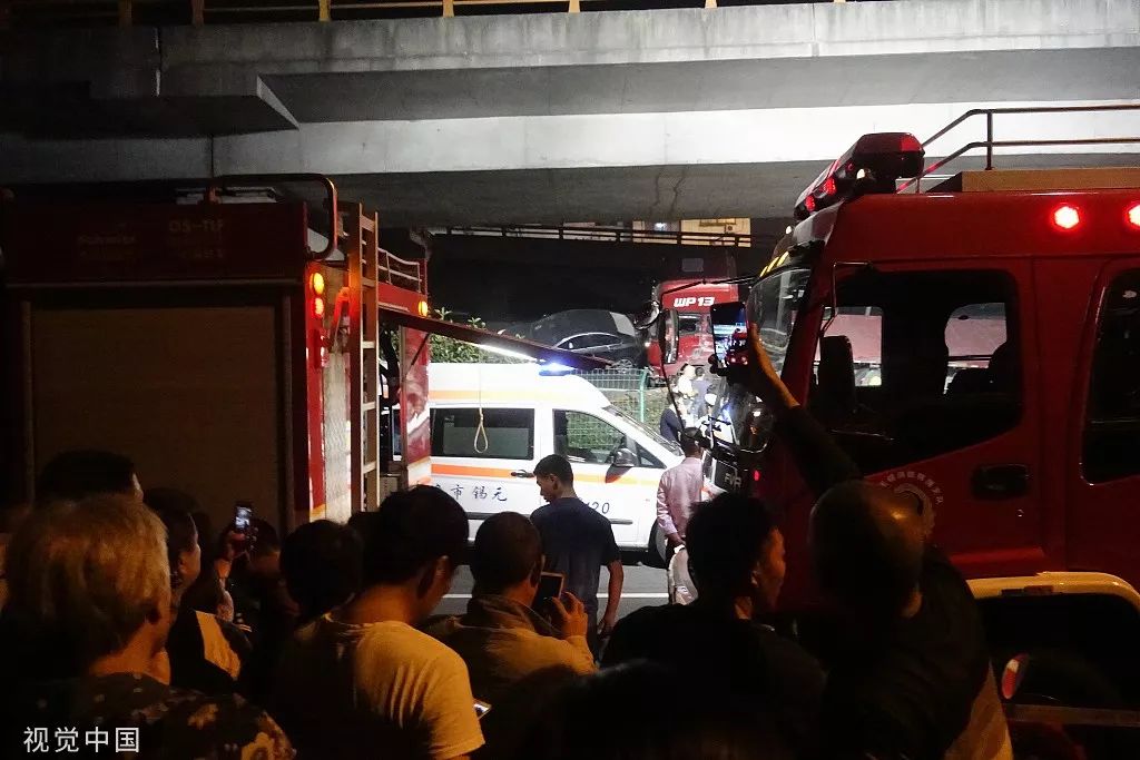▲2019年10月10日晚,江苏无锡,312国道上海方向锡港路上跨桥路段出现桥面垮塌,现场有多辆轿车被压,具体伤亡情况不详。救援车辆已抵达现场。图/视觉中国