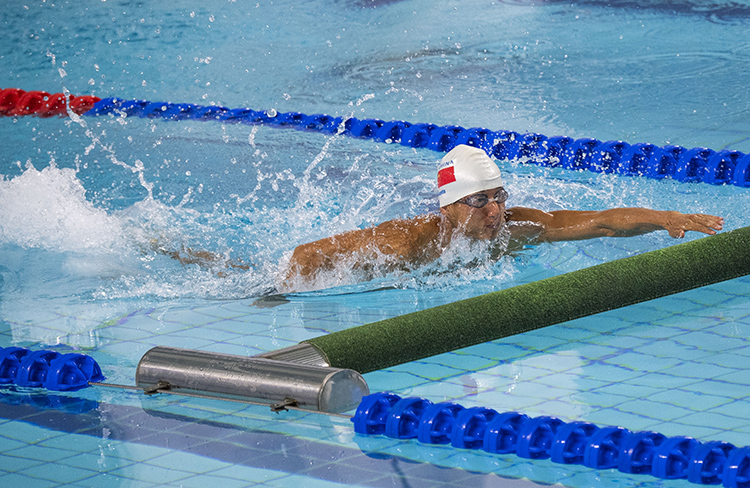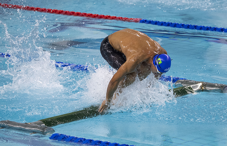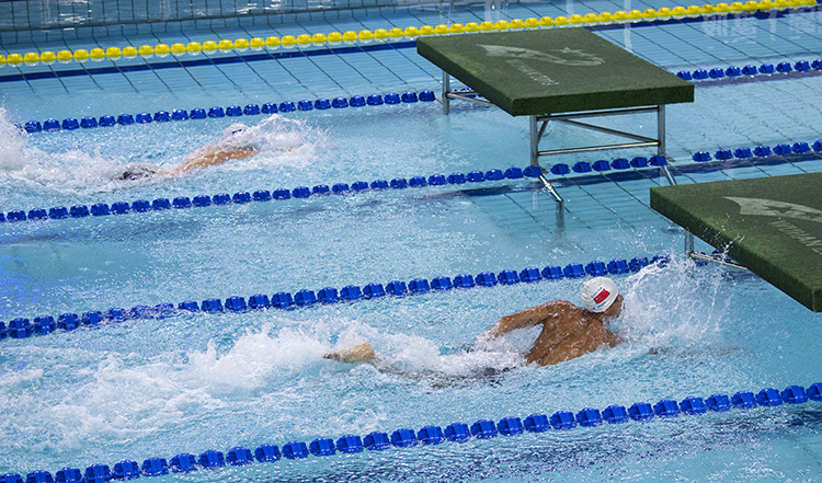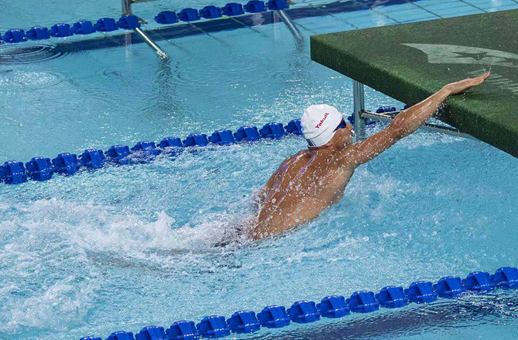 新京报讯 10月21日,第七届世界军人运动会军事五项比赛障碍游泳在武汉市陆军工程大学军械士官学校开赛。参加该项目的运动员需在50米的泳池内接连通过4组障碍。中国选手张政以23.8秒获得男子军事五项障碍游泳赛第一名。