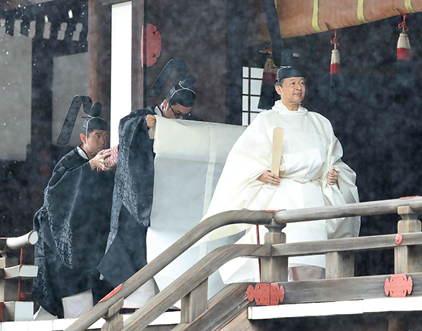 实际上,在今年4月30日明仁天皇举行“退位礼正殿之仪”时,也举行类似仪式,即“退位礼当日贤所大前之仪”和“退位礼当日向皇灵殿神殿奉告之仪”,明仁在仪式中向历代天皇和神明报告即将举行的退位仪式“退位礼正殿之仪”。