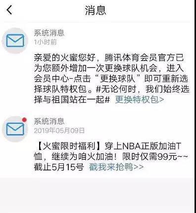 与此同时,从昨天起,腾讯体育选择火箭队的会员球迷已陆续收到提示信息:如希望更换支持的主队,我们将为你安排调整。