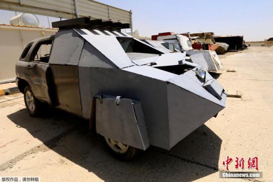资料图:“伊斯兰国”武装分子制造的自杀式爆炸汽车和作战武器。