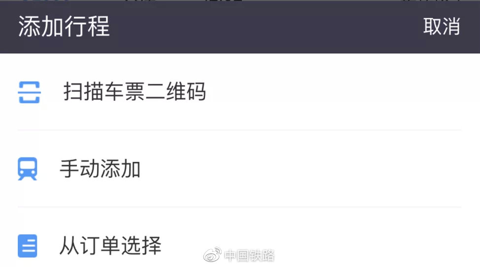 ▲通过扫描车票二维码、手动添加、从订单选择三种方式可添加行程。