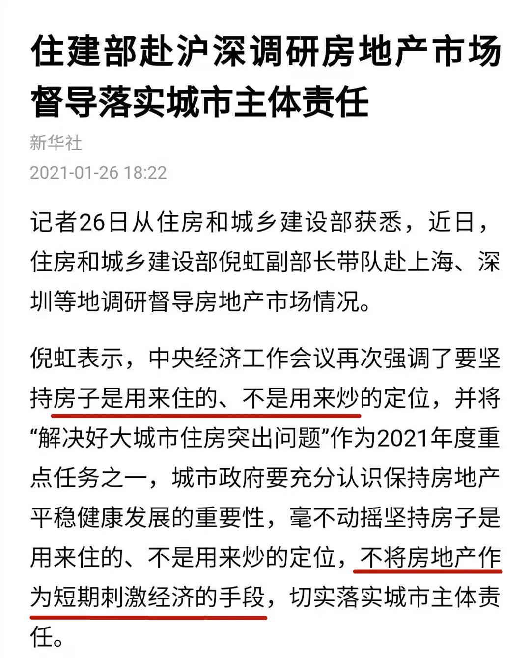 因为在1月26日,住建部赴上海和深圳进行调研,要求落实城市主体责任,坚决遏制投机炒房。