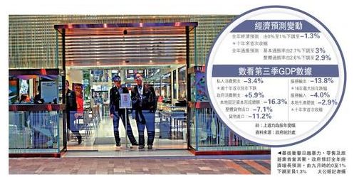 报道称,特区政府修订全年经济增长预测,由9月时预测的0%-1%,下调至负1.3%,这将会是自2009年以来首次出现年度跌幅。通胀方面,特区政府上调全年基本通胀预测,由八月的2.7%,上调至3%,整体通胀也上调0.3%-2.9%。