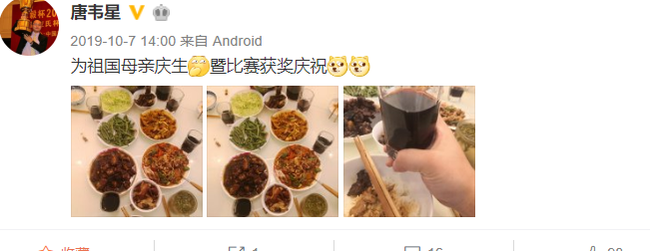 宗主与其他棋手分享生活不同,分享生活的同时,宗主更沉迷分享美食,几乎每条微博都与美食有关,甚至新年祝福也全部分享美食,可以说,是个不折不扣的美食博主。