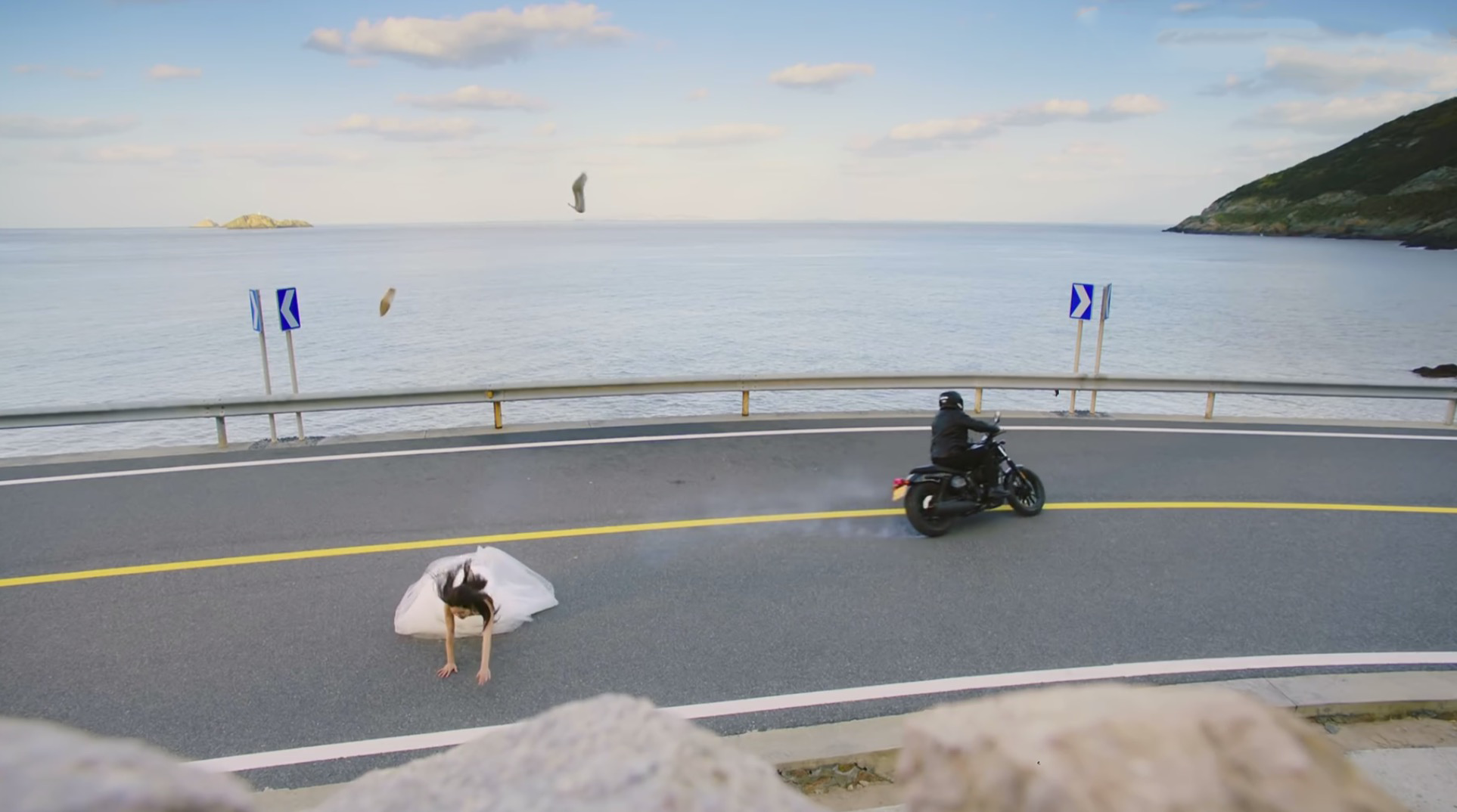 当迪丽热巴穿着婚纱走在柏油马路上时。