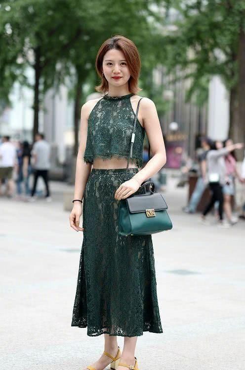 气质端庄典雅的辣妈,绿色的蕾丝裙帅气大方,简练大气又特别美观,绽放出简约大方曼妙身姿,整体更加的具有一股青春的活力,尽显女人时尚大气的一面。